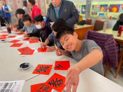 首場在「林口區公所」開跑,特邀在地百歲人瑞沈軏先生共同揮毫,讓高齡友善、社區互動與人文藝術結合,象徵文化傳承與福氣共享,是今年度活動開幕的點睛之筆,第二場「嘉寶國小祖孫學堂」邀集孩子們創作Q版馬年春聯,展現世代共學的童趣,第三場「東勢市場」墨香深入傳統市場,讓買菜民眾驚喜巧遇大師佳作,第四場「南勢活動中心」、第五場「湖南活動中心」及第六場「仁愛活動中心」貼近住宅區,吸引大量青年與孩童參與,現場客製化的吉祥語春聯供不應求,氣氛溫馨熱絡。
