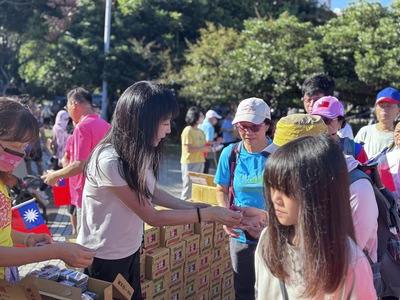 今天活動吸引了大量市民共襄盛舉,為國家送上生日的祝福。儘管活動在早上7點20分才開放入場,有不少民眾清晨6點多就已經開始進場,展現了高度的熱情與支持。活動現場不僅準備了國旗紀念品,包含國旗磁鐵、小國旗,還貼心提供了御飯糰和果汁飲料,加上台上由老師帶動唱,讓參加者們一早充滿活力。