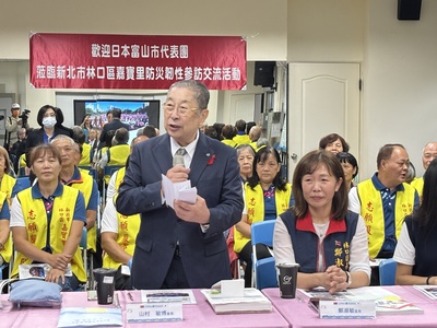 林口區長鄭淑敏說,面對極端氣候與複合型災害挑戰,林口區積極推動「以人為本」的社區防災模式,整合公所、里辦公處與企業資源,共同打造具有韌性的生活環境,本區嘉寶里能獲得內政部防災韌性二星認證,代表基層組織具備自助與互助的能力,期盼今日與富山市朋友進行國際間經驗交流與分享,能讓彼此從社區力量中找到防災的新思維。
